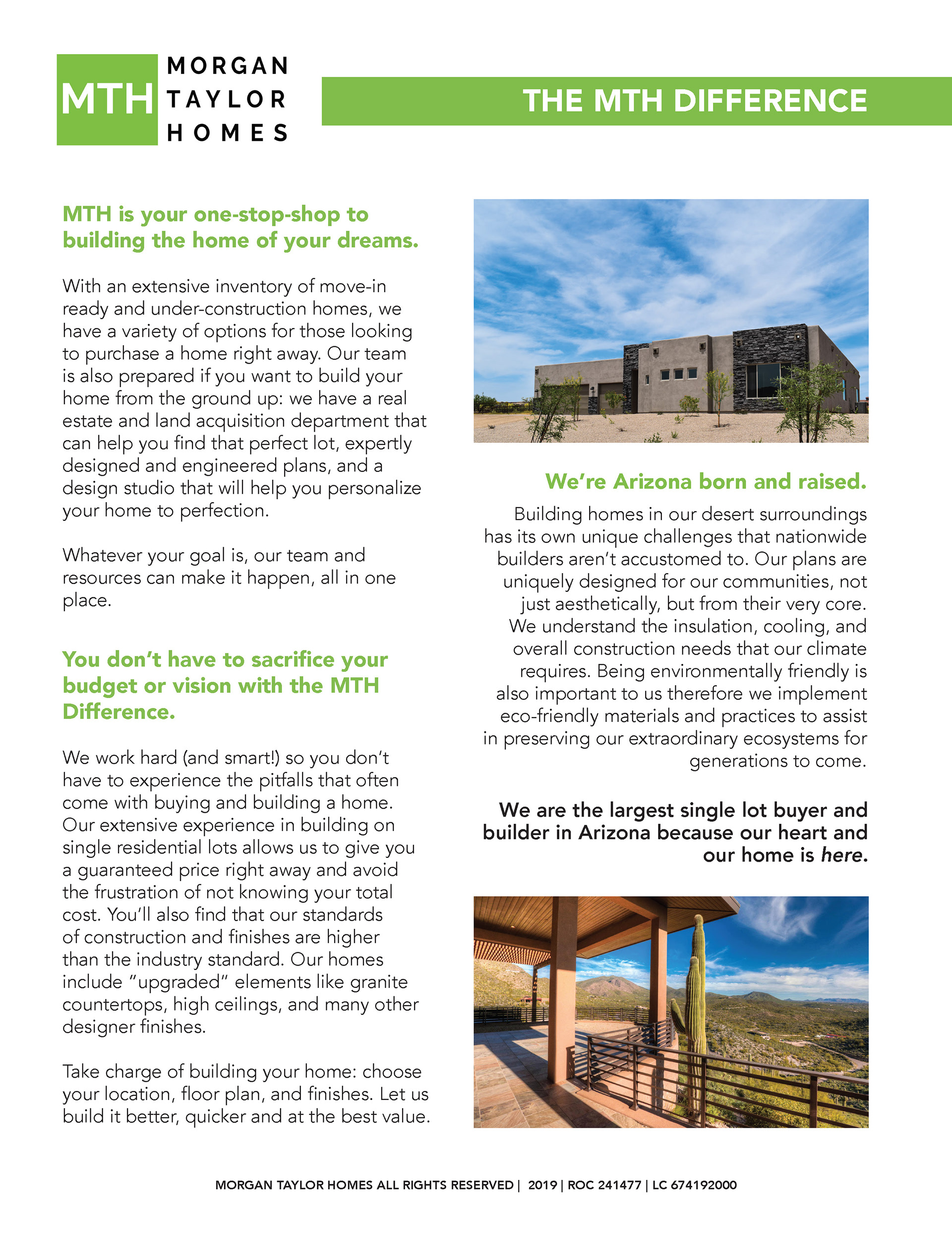 Morgan Taylor Homes "Build Your Desert Dream Home" Flyer Series- 2020